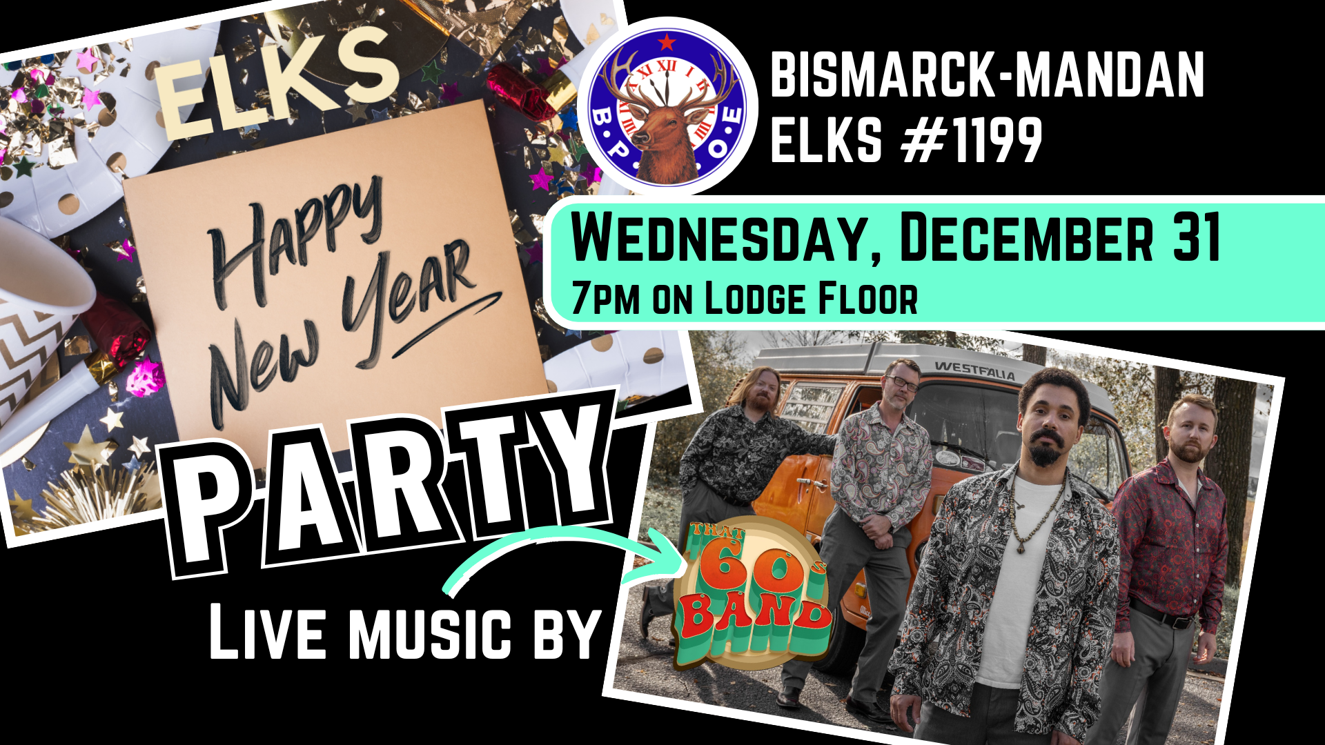 We will have live music from ‘That 60’s Band’ playing from 7:30-11:30pm. ** DOORS will OPEN to Lodge Floor at 7pm **